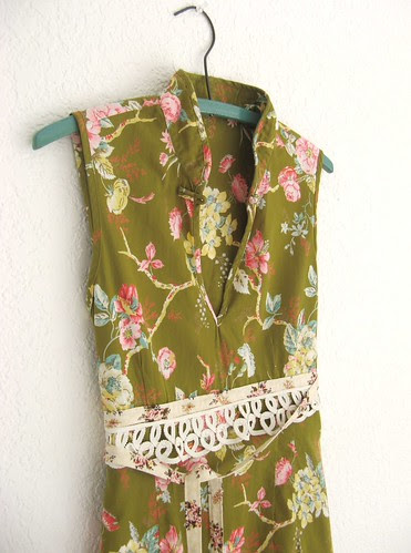 Ooooooh just love that fabric Tif. The green is beautiful. The dress is feminine, but has an air of sophistication/elegance at the same time because of the..... background colour, the mandarin collar, and a lovely simple shape.